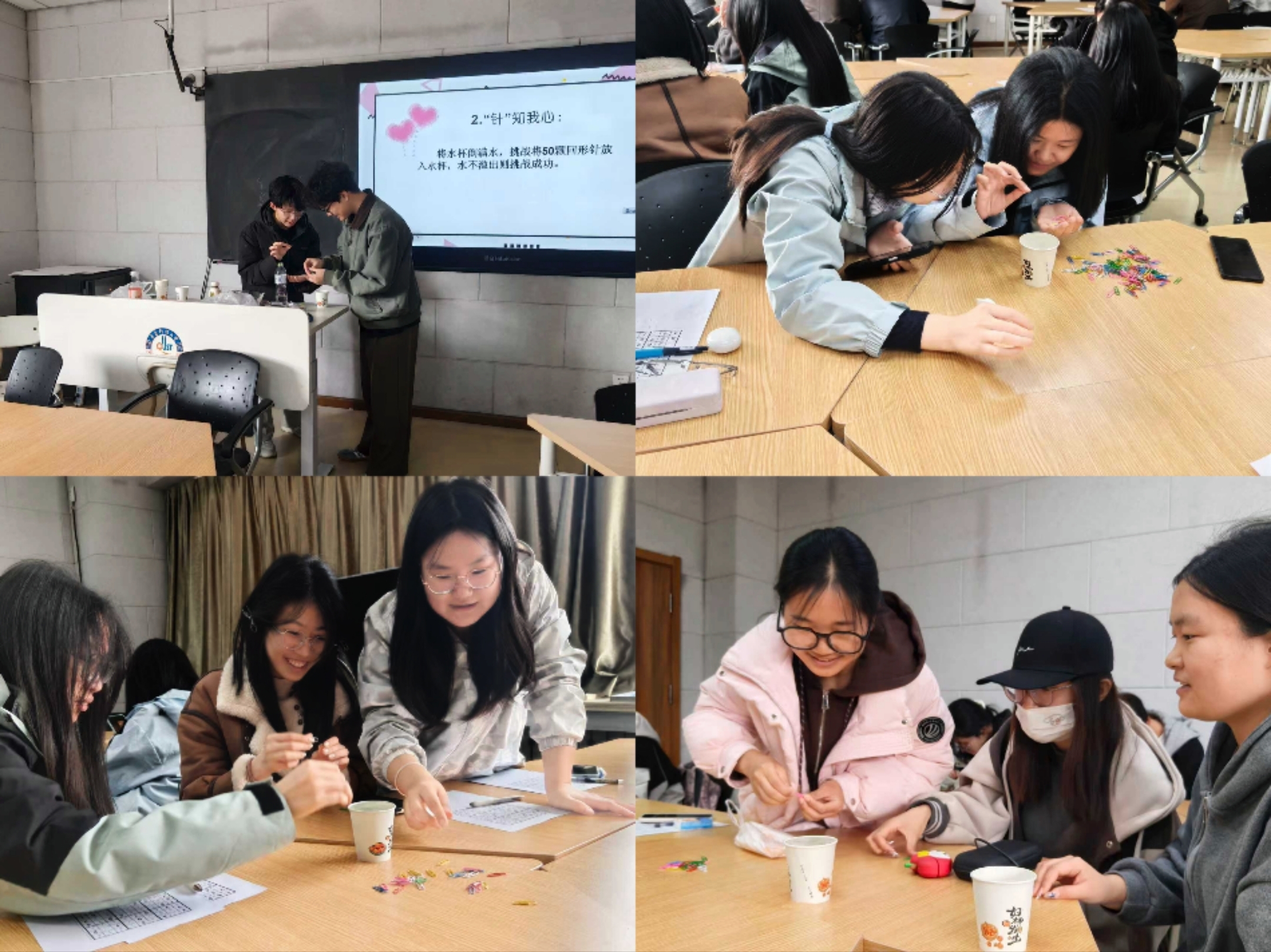 “‘针’心专注”——表面张力实验与专注力训练。围绕缓解内心焦虑、提升专注度的目标,以水的表面张力数理实验为依托,开展“‘针’知我心”专注力训练。同学们凝神静气尝试将细针平稳置于水面,在反复操作中摒除外界干扰、沉淀浮躁心绪,在探索科学现象的过程中,锤炼专注力与情绪管控能力,学会在沉浸式体验中舒缓压力、平复心境。