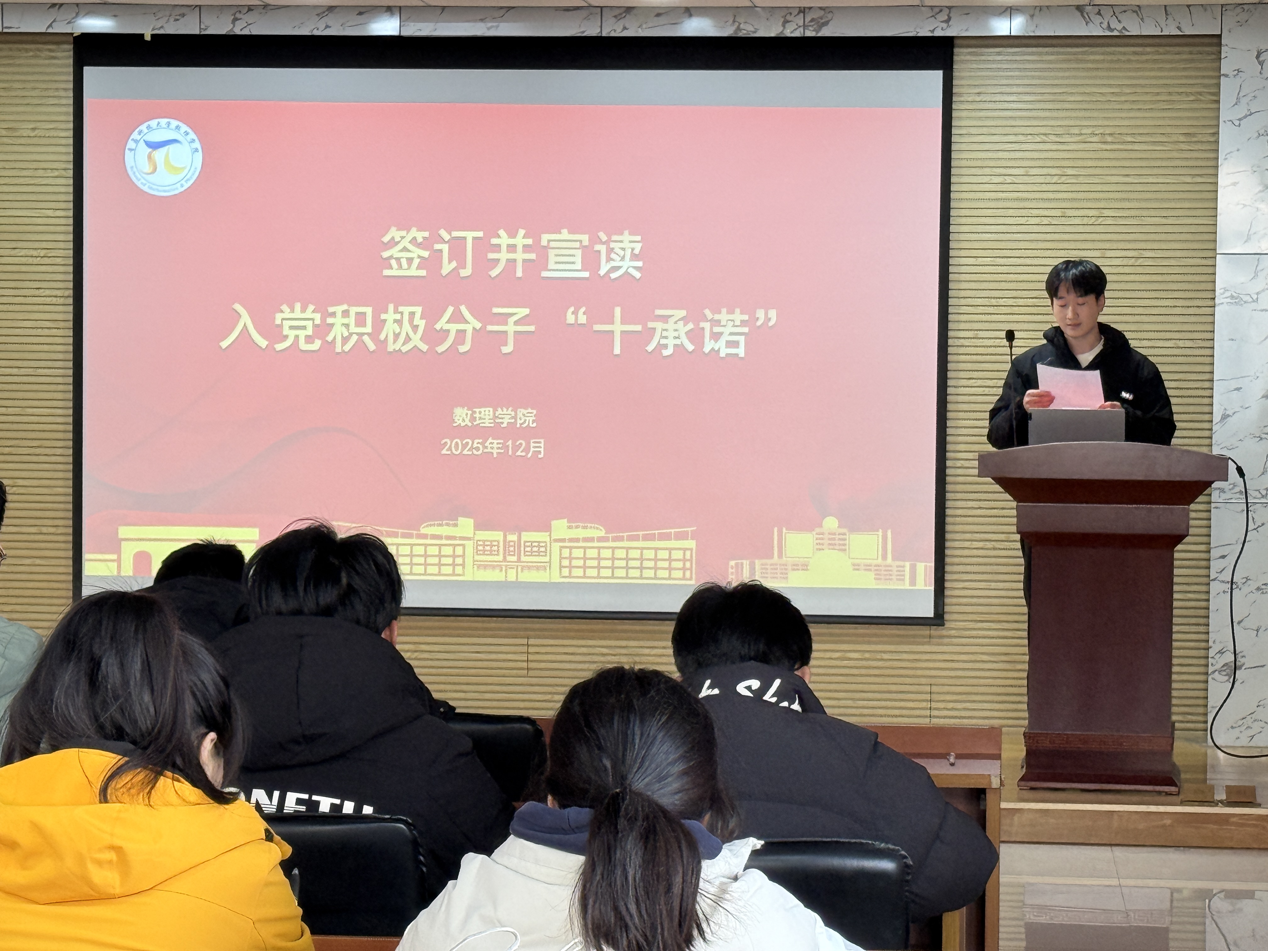 为进一步加强入党积极分子教育培养,12月9日下午,数理学院本科生党支部、研究生党支部组织《入党积极分子“十承诺”》签署会,全体学生党员、2025年新确定入党积极分子参加活动。