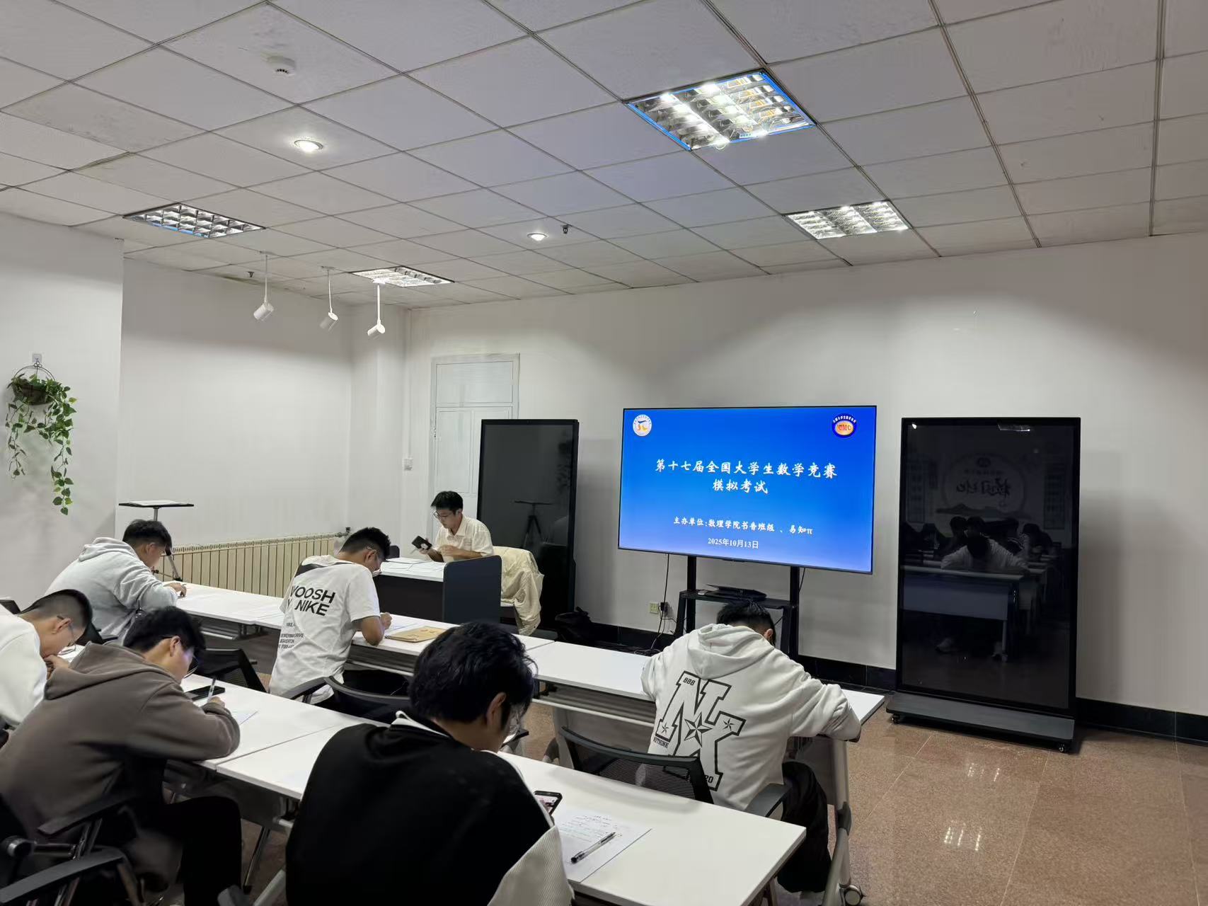 为精准服务学生学业发展需求,深化“书香班级”育人品牌建设。10月13日晚,数理学院书香班级联合易知π数学共同体于学校一站式社区举办第十七届全国大学生数学竞赛模拟考试。本次活动通过全真模拟竞赛环境,帮助学生熟悉考试节奏、明确备考方向,为冲刺全国赛事奠定坚实基础。
