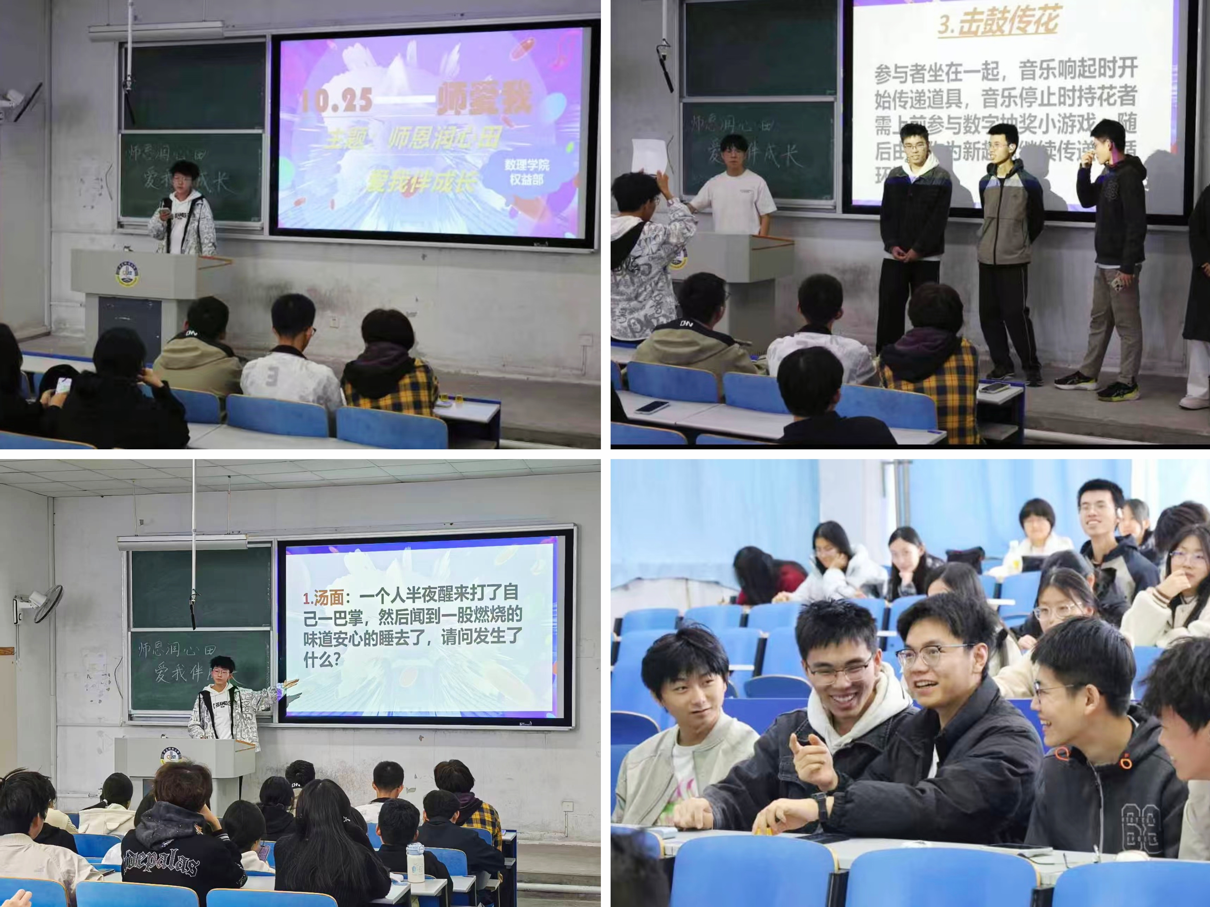 为拉近师生距离、促进情感交流。10月22日,数理学院举办“10·25 师爱我”主题系列活动。活动通过趣味游戏、主题征文、师生合影等多种形式,为师生搭建互动平台,传递“尊师爱生”的温情。