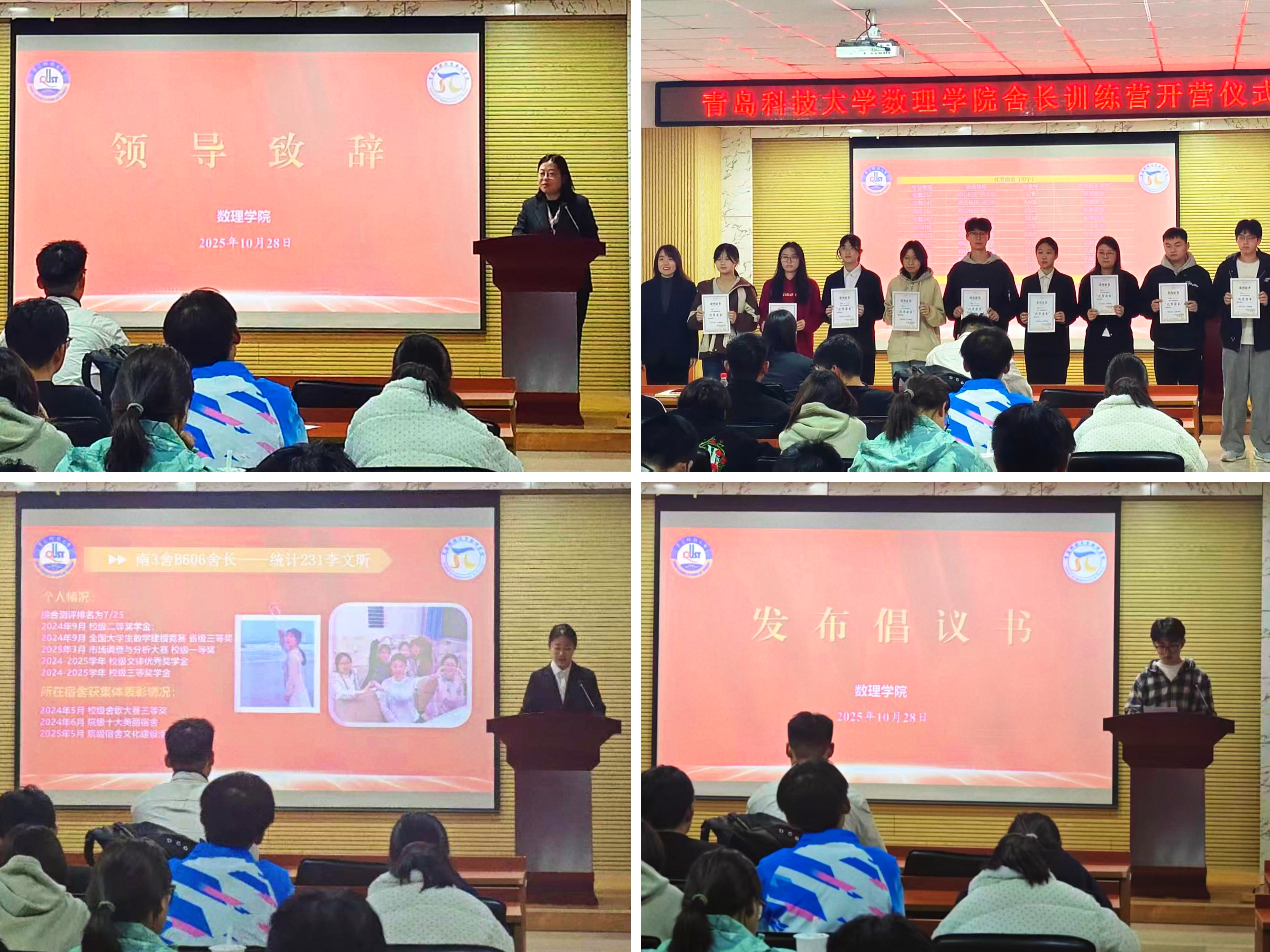 为强化宿舍育人阵地建设,提升舍长履职能力,10月28日,数理学院举办舍长训练营开营仪式,学院党委副书记李雯雯、各年级辅导员以及宿舍长代表共同参与活动。