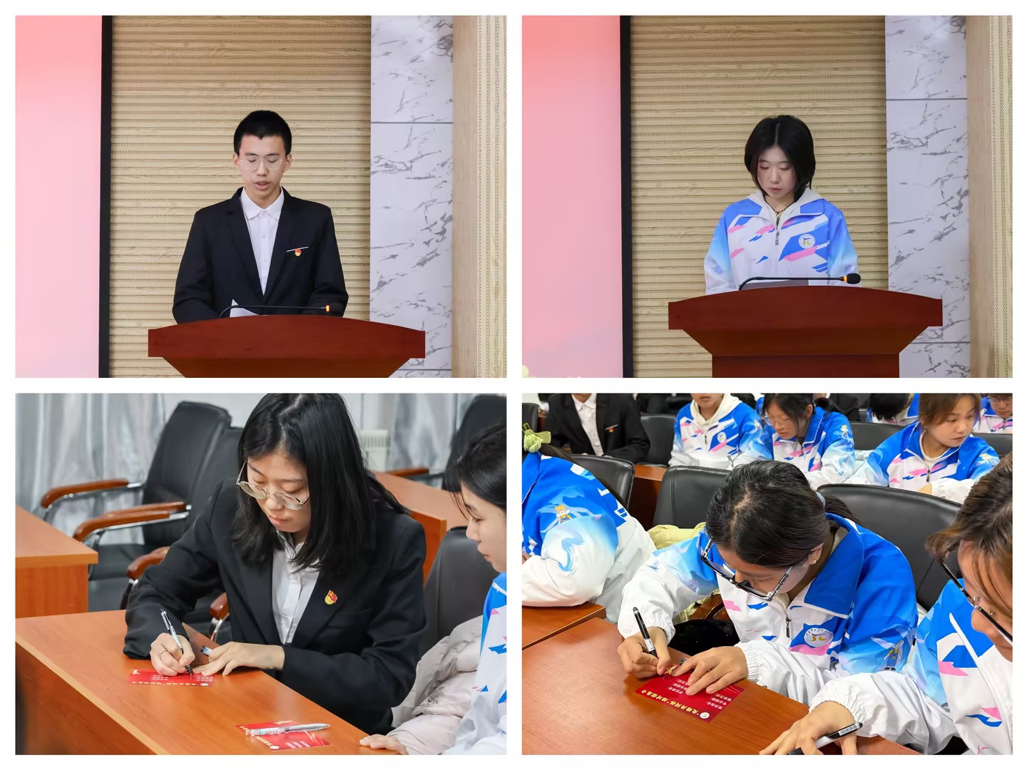 在经验交流环节,五星级结对党员代表统计221班张宸萱结合自身实践,生动分享了在思想引领、学业帮扶、生活关怀等方面的具体做法与心得体会,为在场的结对党员提供了宝贵借鉴。新发展党员代表应数231班马振鹏作了表态发言,表达了全体新发展党员积极服务同学、做好“传帮带”的决心。结对新生代表应物252班张洋洋真诚感谢了党组织的关怀和学长学姐的帮助,并发出了向党员同志看齐、努力成长成才的号召。最后,在与会师生的共同见证下,新一批结对党员与结对学生郑重签署了“结对联系卡”,正式确立帮扶关系,架起一座传递温暖与力量的桥梁。