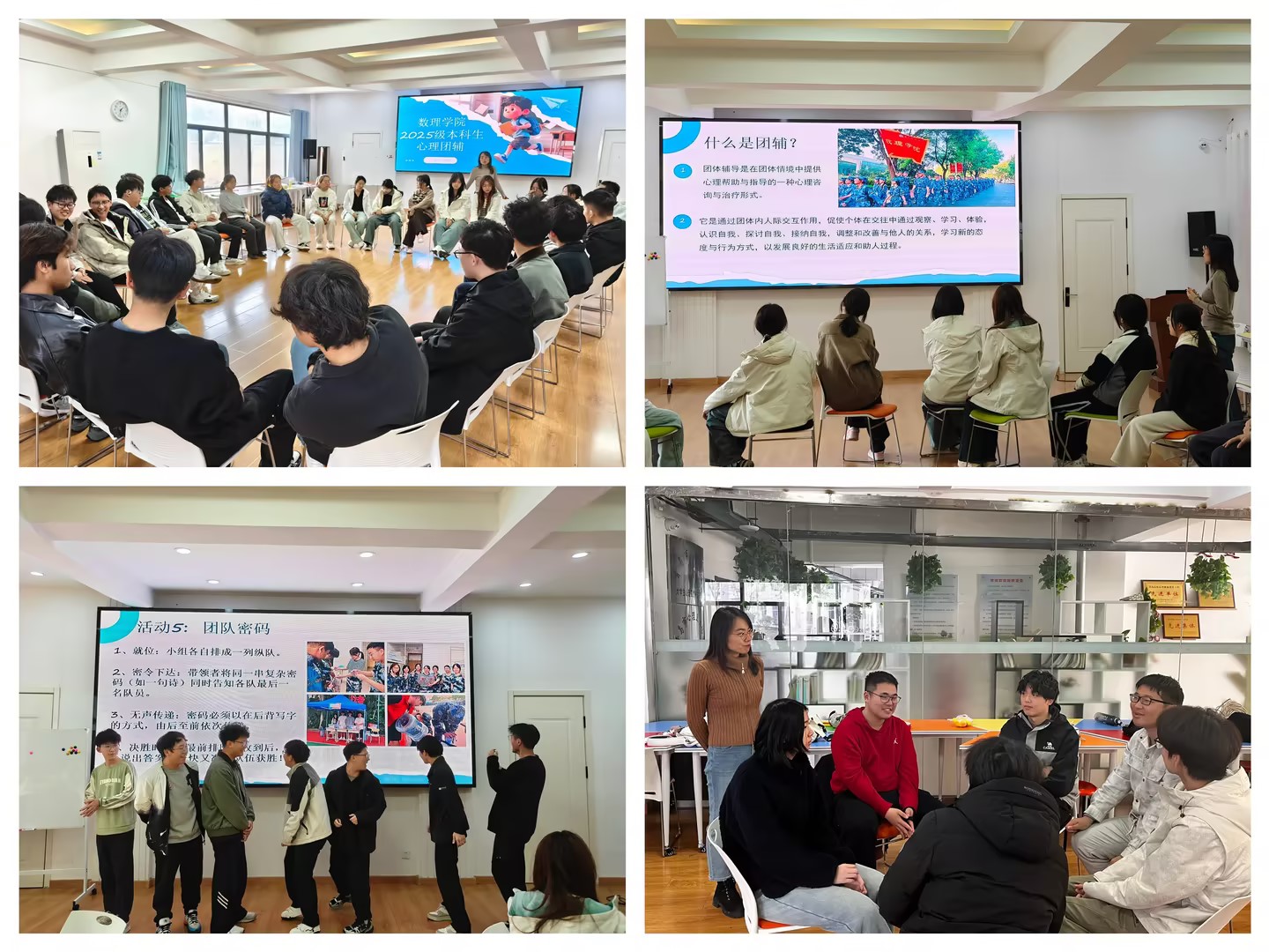 近日,数理学院面向全体大一新生组织开展了以“心相遇·新启航”为主题的心理团辅活动。本次活动覆盖学院本科新生6个班级,通过一系列精心设计的团体游戏,在轻松愉快的氛围中有效促进了新生适应、人际融合与班级凝聚,助力新生快速融入大学生活,营造积极健康的校园心理氛围。