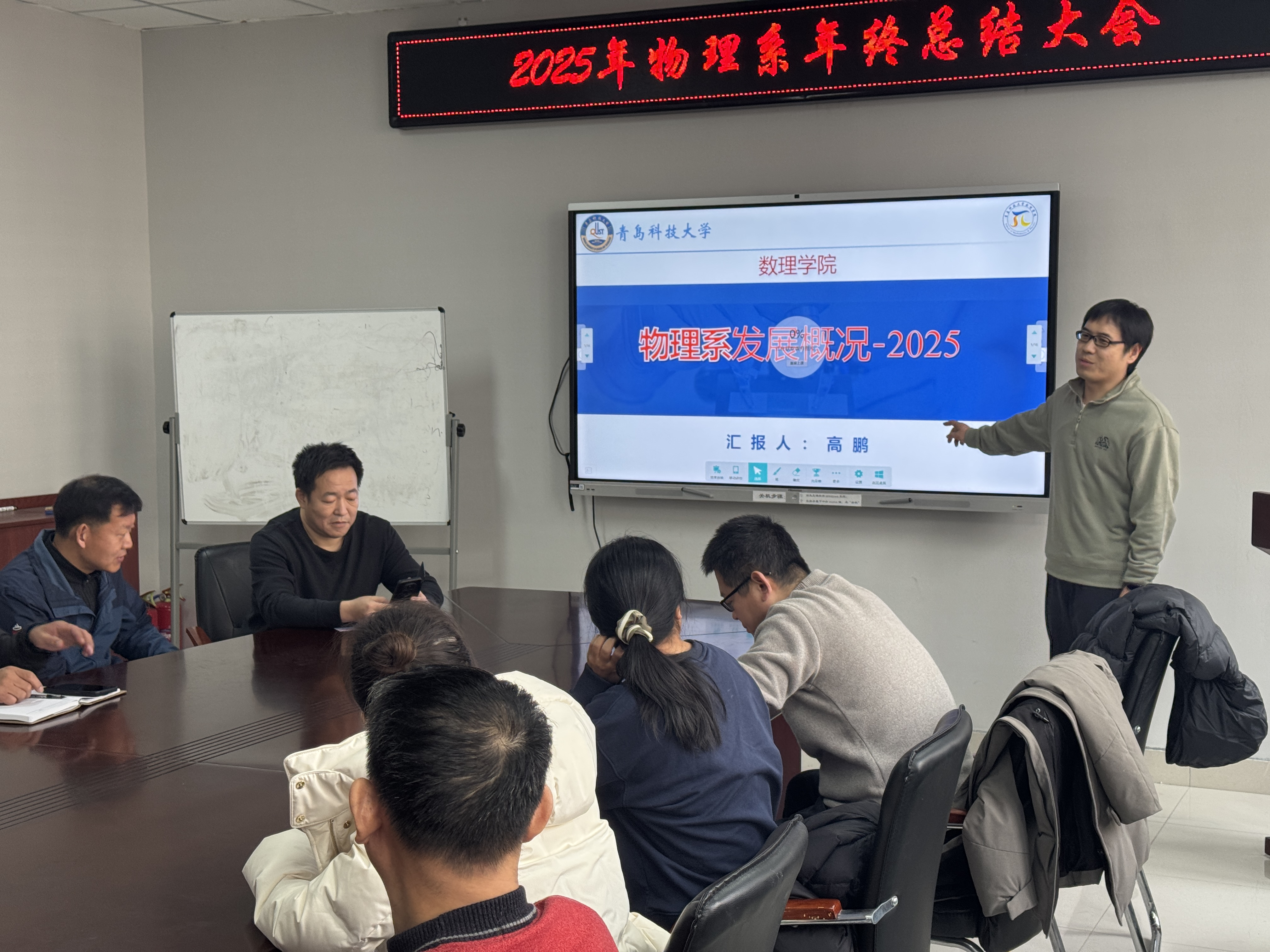 会后,全体与会人员合影留念。此次会议既是对2025年工作的全面回顾与反思,也是对2026年工作的规划与动员,进一步凝聚了发展共识,明确了前进方向,为物理系新一年工作的顺利开局奠定了坚实基础。