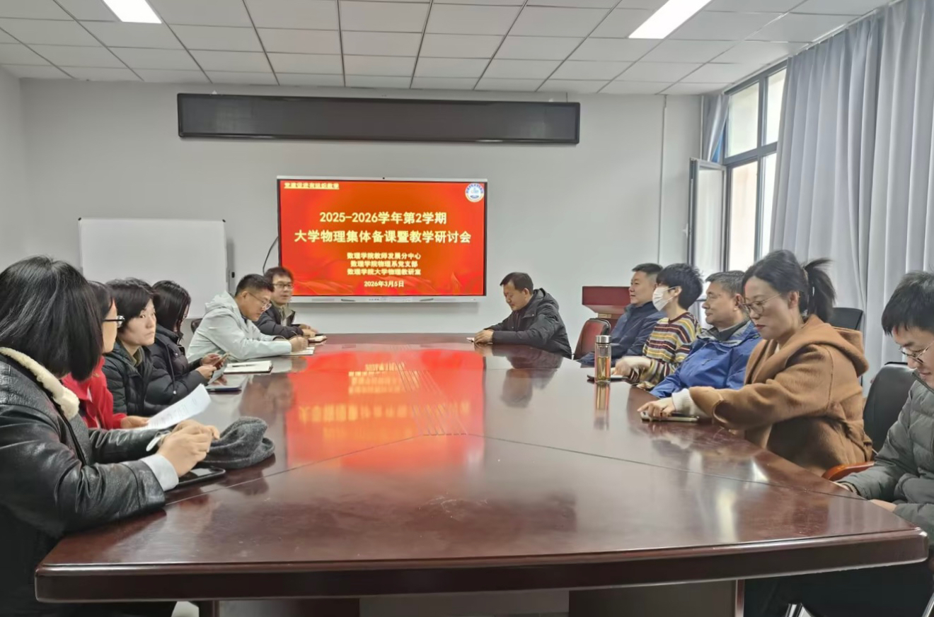 为进一步深化大学物理课程教学改革,提升教学质量,3月5日上午,数理学院物理系在308会议室组织召开2025-2026学年第二学期大学物理集体备课暨教学研讨会。会议由大学物理教研室主任闫鹏飞主持,系主任高鹏参会发言,大学物理课程任课教师参加研讨。