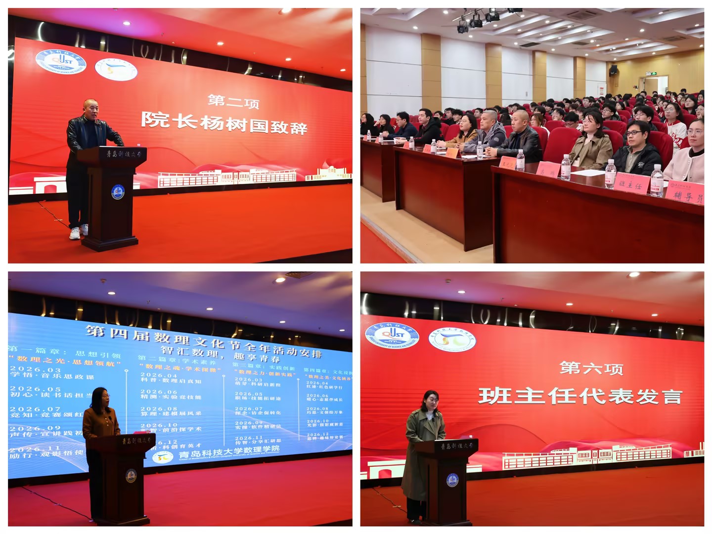 3月17日下午,数理学院第四届数理文化节开幕式在崂山校区第三报告厅举行。学院党委书记刘保成、院长杨树国、党委副书记李雯雯、系主任、班主任、辅导员,以及2024级、2025级全体学生参加开幕式。