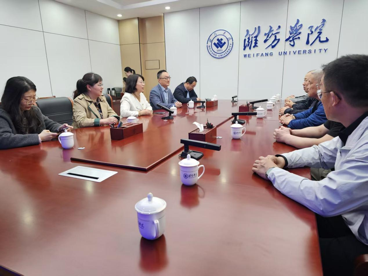 4月21日下午,调研团到访潍坊学院,先后参观物理与电子信息学院、数学与统计学院,实地考察实践教学与平台建设情况。在座谈交流中,双方围绕专业建设、学科发展、学生竞赛、师资培养、校企与中外合作等议题深入研讨,并就优质生源拓展、联合培养、招生宣传等工作达成共识。