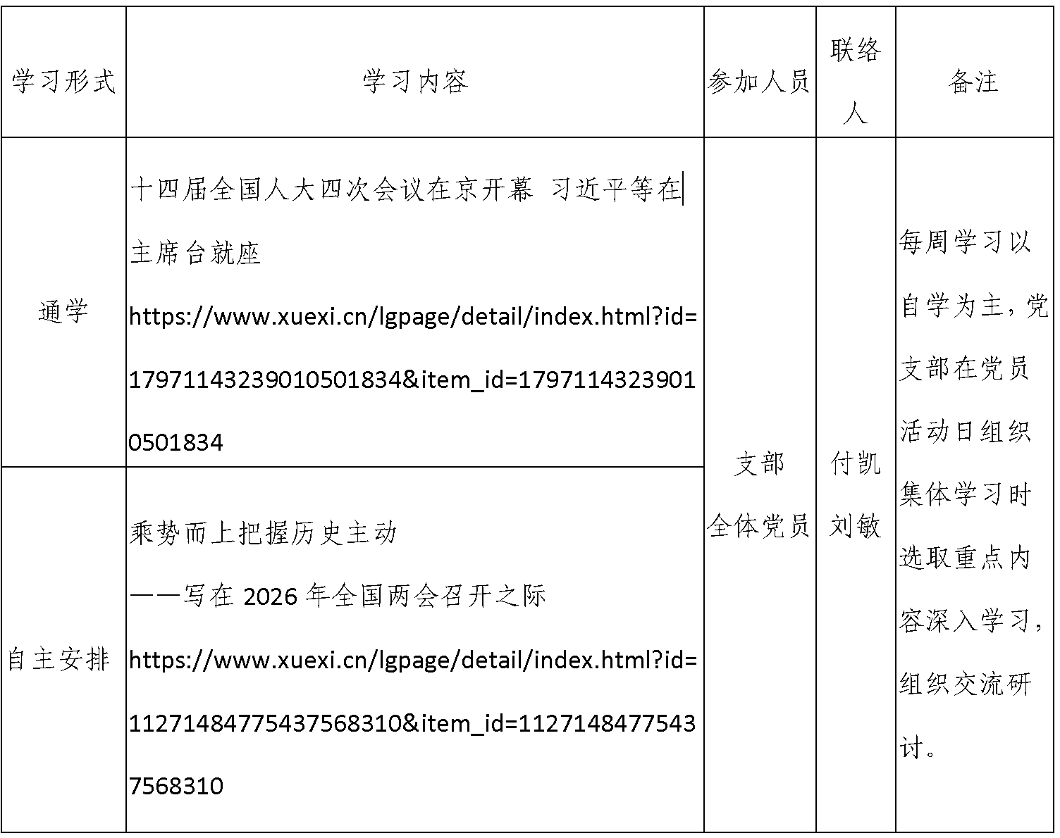 2026年春季学期第1周数理学院本科生党支部、研究生党支部学习安排